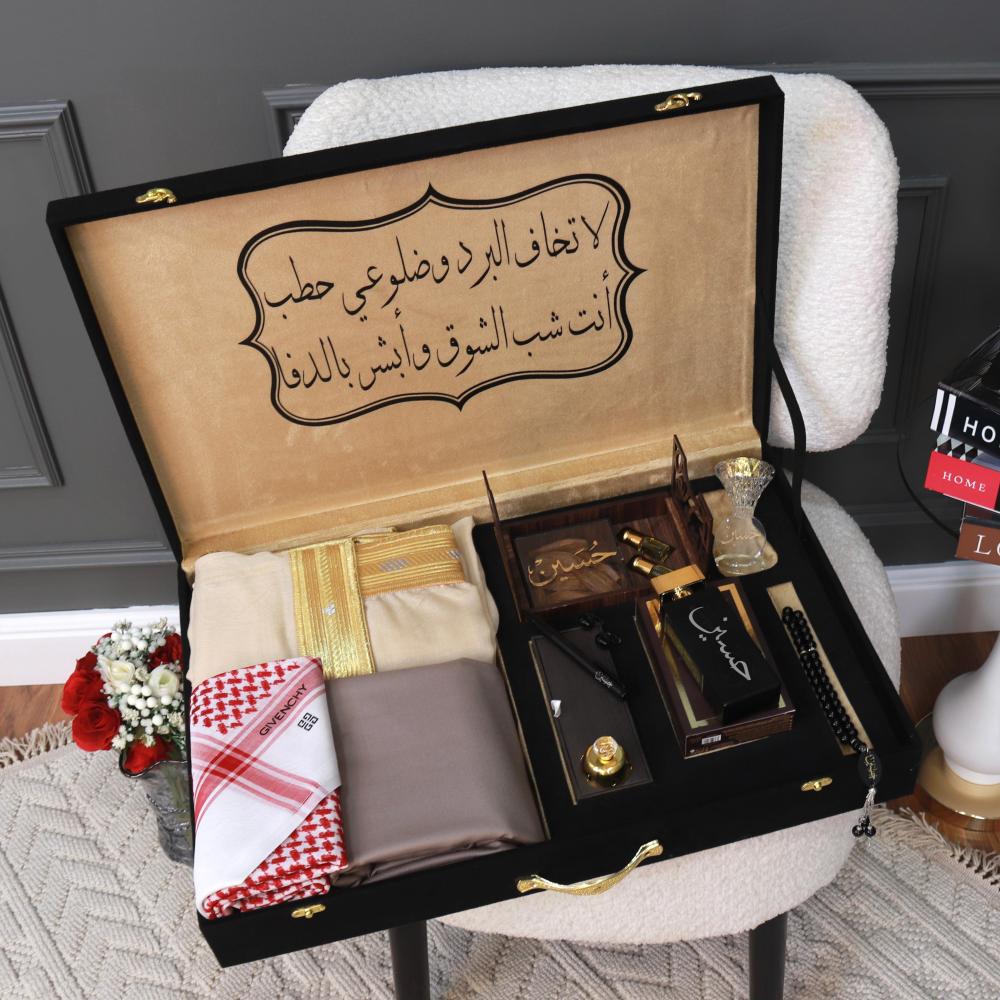 - بوكس ملكي قطيفة فاخر: مع إمكانية إضافة عبارة خاصة حسب الطلب.