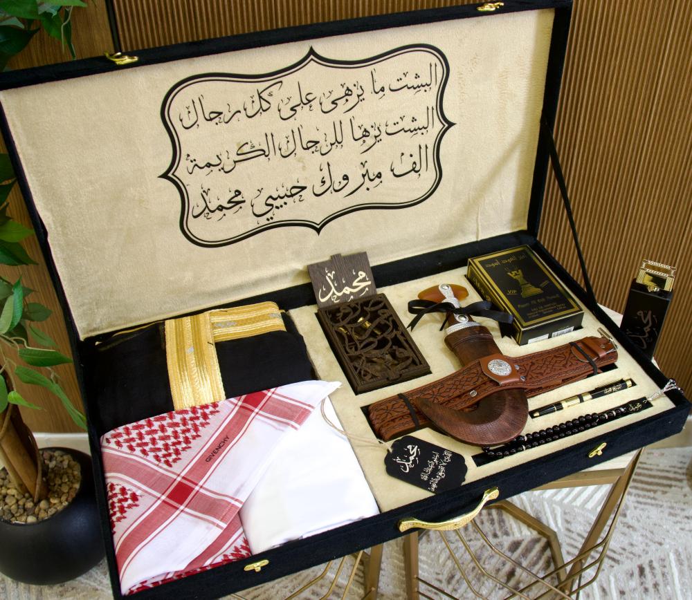 بوكس هدية العيد الفاخر من لمسة تطريز هو هدية ملكية متكاملة بتصميم فاخر يعكس الأصالة والفخامة لتجعل عيدك ذكرى لا تُنسى.