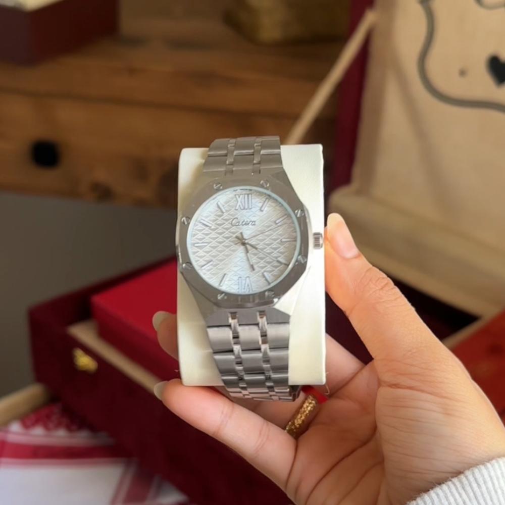 - ساعة كارتير ستانلس ستيل: مقاومة للماء مع ضمان سنة على المكينة والبطارية.