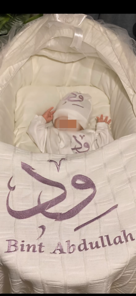 - تطريز احترافي لاسم المولود بألوان زاهية من اختيارك.