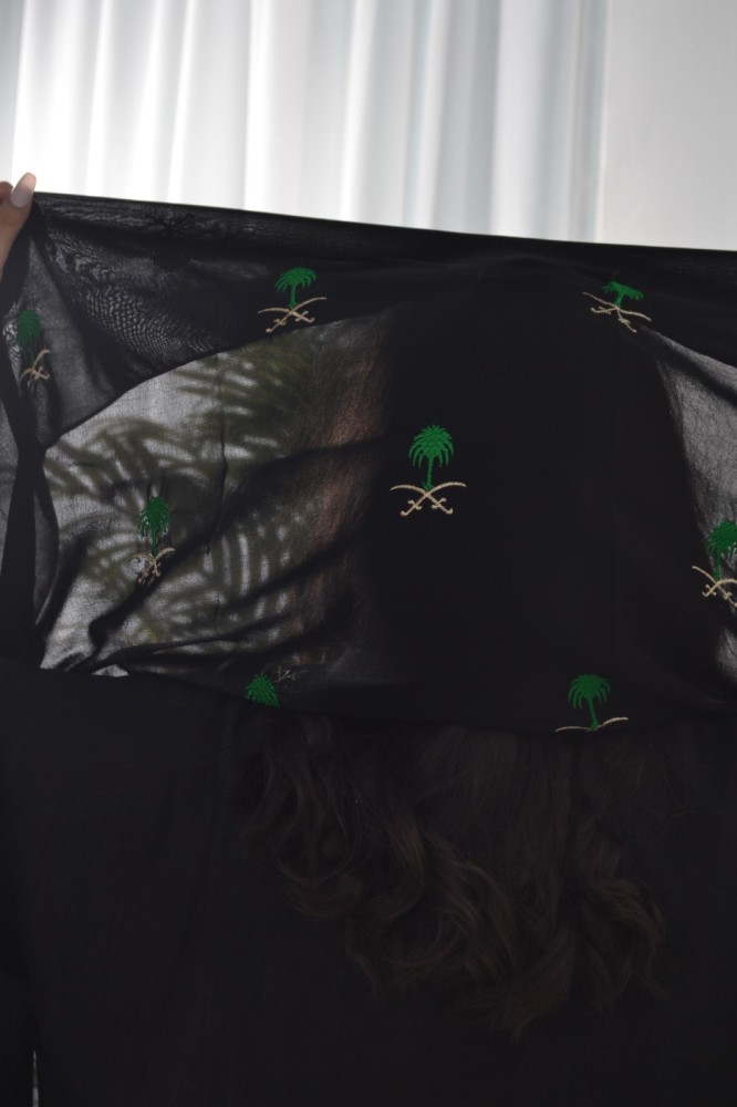 تألقي بالفخامة مع طرحة مطرزة بالكامل بتصميم السيفين والنخلة! مثالية للمناسبات الوطنية والإطلالات الفاخرة، كما تعد خيارًا رائعًا لهدايا أونلاين مميزة.
