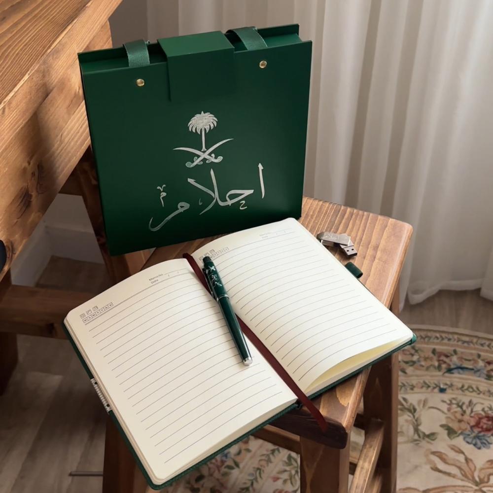 - دفتر فاخر مع نقش الاسم أو الشعار لإضافة طابع شخصي لا يُنسى.