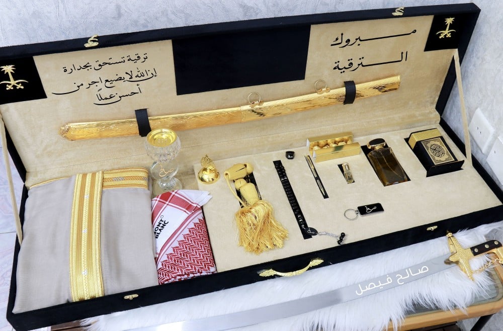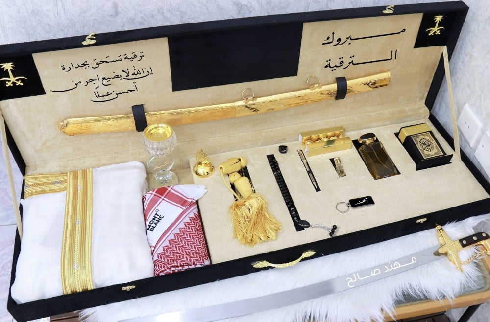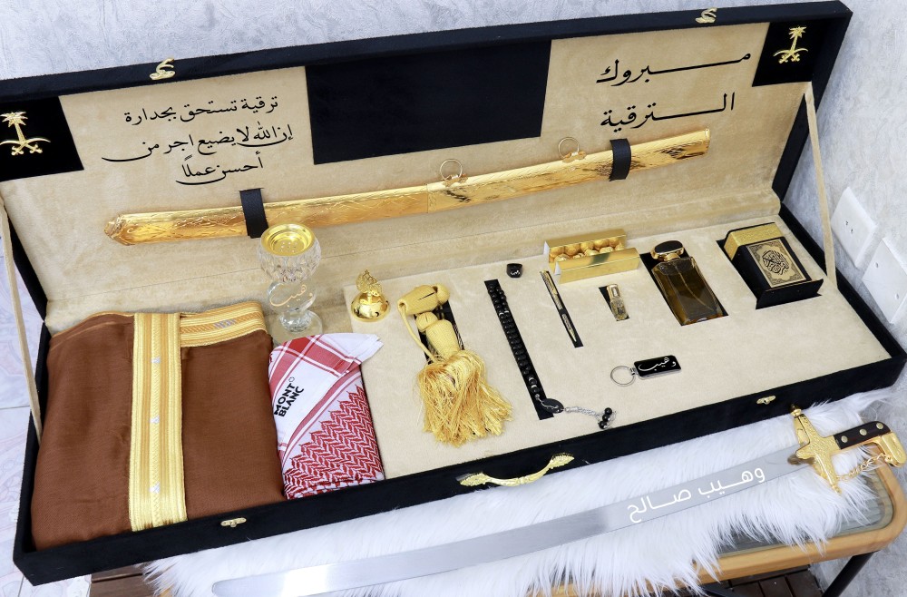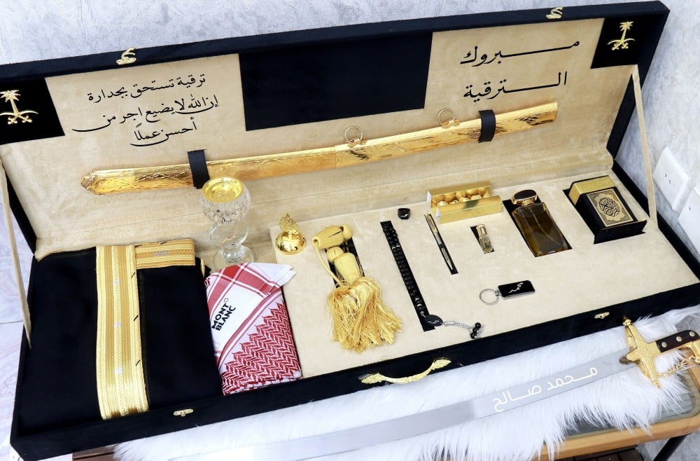 - سيف ذهبي فاخر: بتقنية الليزر مع إمكانية نحت اسم حسب الطلب.